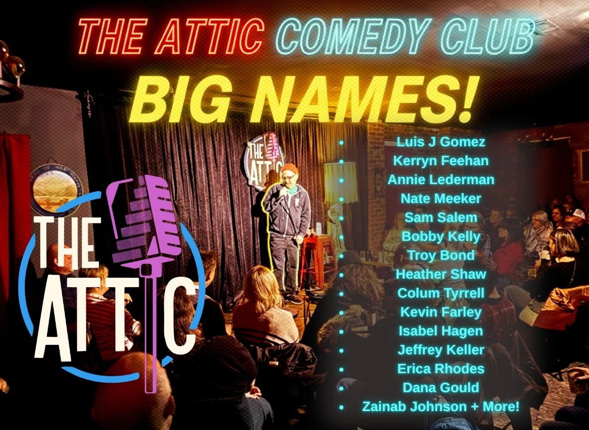 The Attic Comedy Club is you go-to comedy club in Columbus, OH, offering weekly live stand-up shows, comedy showcases, improv nights, roasts, drag comedy, trivia and even comedy podcast tapings. Located in Olde Towne East, just minutes from downtown, we bring together the city’s best comedians and national touring acts in an NYC-style underground venue. Whether you’re Googling “things to do in Columbus this weekend” or “stand-up comedy near me,” the Attic is where you’ll find unforgettable, raw, and hilarious nights out.
